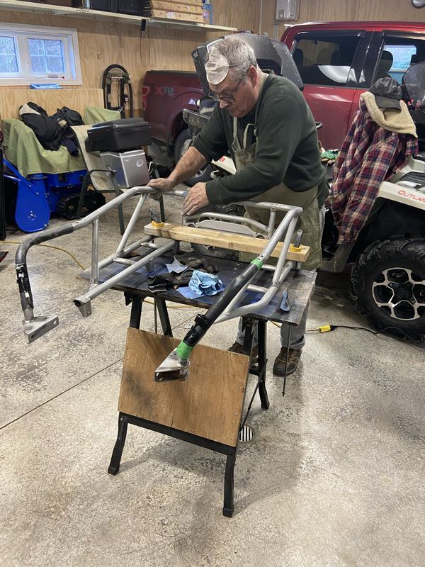 In January Dad and his Buddy Kevin removed the bumpers and rear racks to sand out any rust and scratches and prep them for a fresh coat of paint. This will keep the sled not only looking great but protected from the harsh winter elements as well.