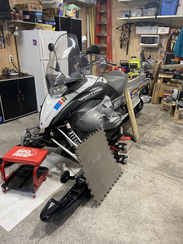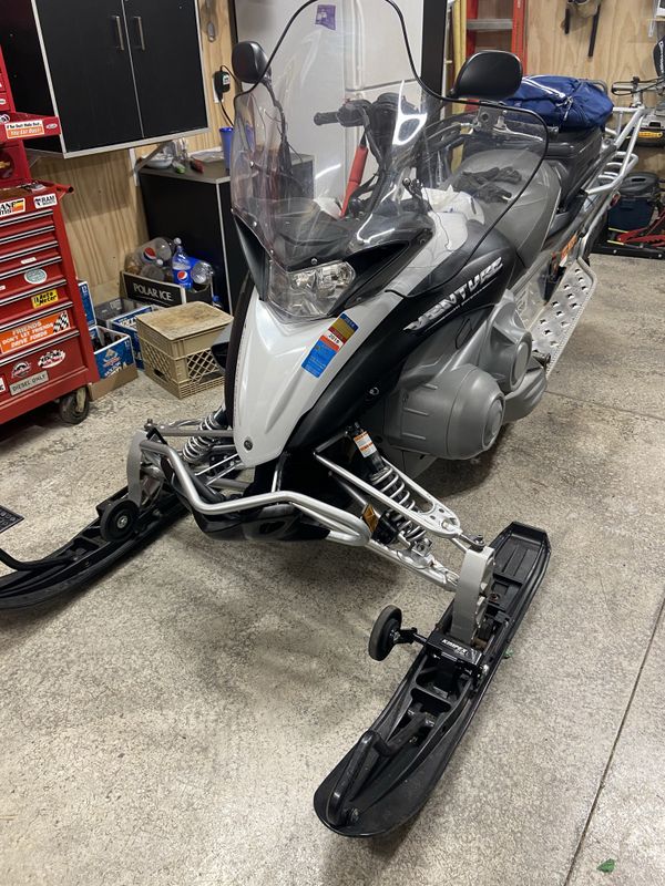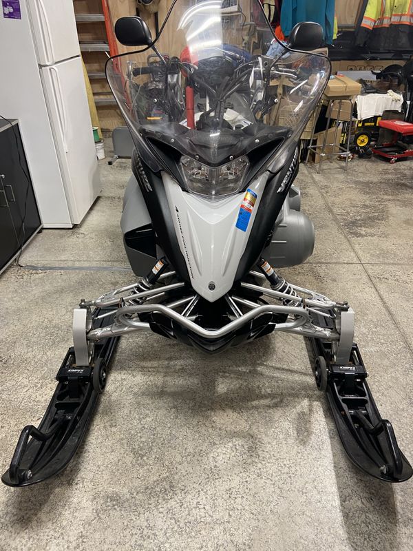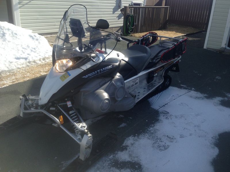 2011 Yamaha Venture Multipurpose Genesis 499cc 2 Cylinder 4 Stroke Front: KYB Aluminum Shocks, Double Wishbone Extra Wide Skis Rear: HPG Shocks, Pro-comfort 144 Skid 144"x16"x1.25" Camoplast Custom Rip Saw Track Electric/Mechanical Reverse Large Windshield Rear rack with removable 2-up seat for even more storage Yamaha accessory lockable storage box Kimpex Ski Mounted Dolly Wheels