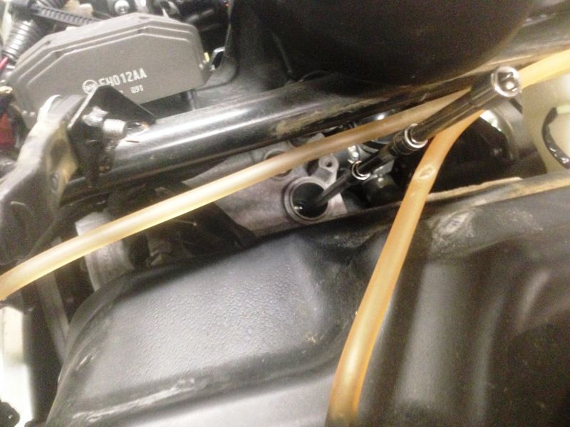 To remove the tank you also have to disconnect the fuel return line which is a PITA so I pulled the tank back and removed the coil packs & spark plugs with an assortment of extensions.
