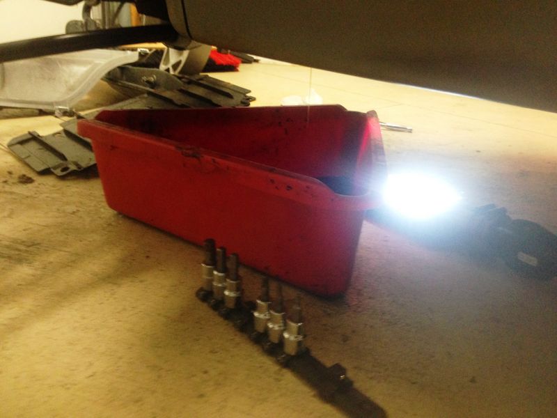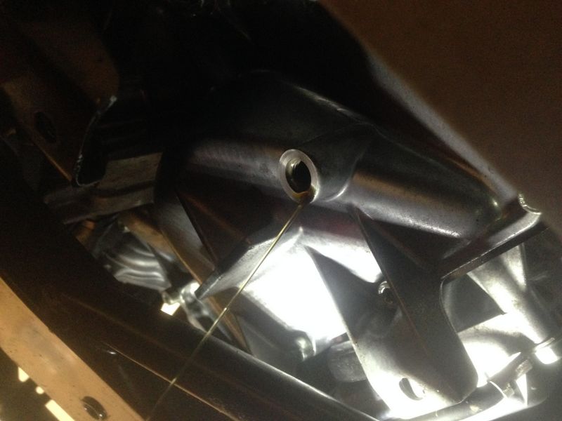 With the engine drain reinstalled and torqued, I drained the remote oil tank which is a 12mm nut on bottom of the tank.