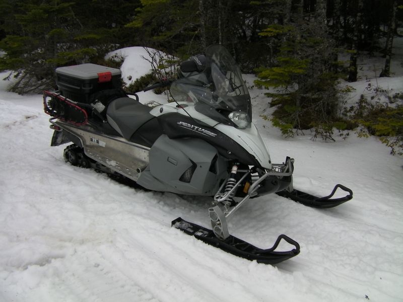 The machine has a great suspension for a smooth ride, an extra long and wide track (144x16x1.25") for less chance of getting stuck, and a reliable, quiet, clean, 500cc twin cylinder 4 stroke engine which has lots of snap and sips fuel.