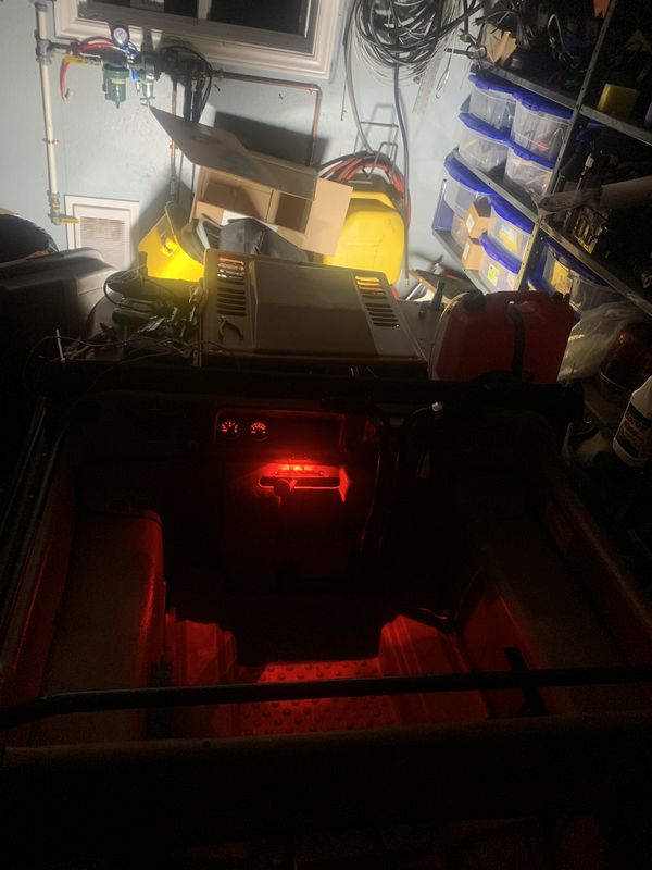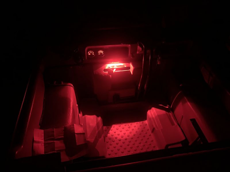Interior red LED lights front and rear and gauge backlighting is wired to the main headlights, although they may end up on their own switch if I find them too bright with the Canopy installed.