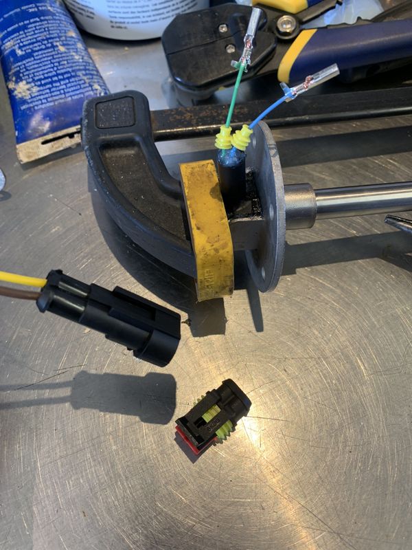 I chose to install a single pair weather pack connector so that the sending unit could be easily unplugged if the gas tank has to be removed in the future.