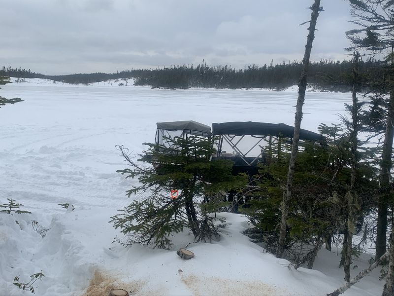 With our previous plans for the week abruptly cancelled, French and I took advantage time already booked off work and beautiful weather Thursday to head out over the highway for some ice fishing. The weather was forecasted to turn poor Friday & Saturday so this would be a great opportunity to get up in the woods. French would be running his 2017 Argo Huntmaster while I of course piloted Project 6x6, both machines are equipped with tracks, windshield and convertible tops.