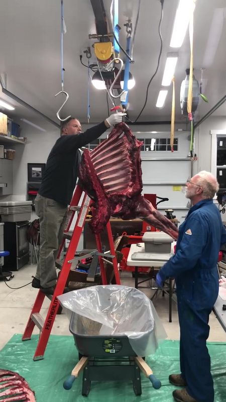 French's cooler was put to good use to hang the quarters until Bassan, Roger and I got a chance to process them.