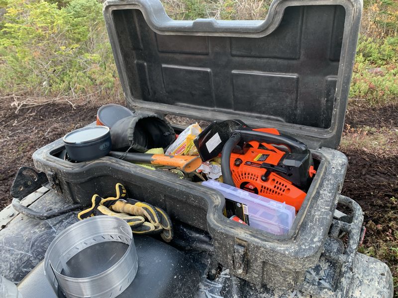 Just a couple days after my successful Thanksgiving weekend solo moose hunt, French and I headed back down the Southern Shore to have another crack at filling the last set of tags of the season. We were a little behind schedule this morning so we quickly unloaded just one machine, French's 2017 Argo Huntmaster and headed in the road to our hunting area.