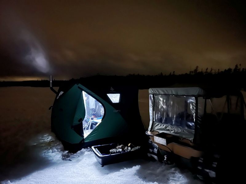 The following morning brought overcast skies and light freezing drizzle. I started to break camp around 8:30, packed up the Argo and Pelican sleigh and was back to the truck at 10am. I would have stayed longer, but the weather wasn't great nor was the fishing. I did have to get some work done in the afternoon so it worked out fine.
