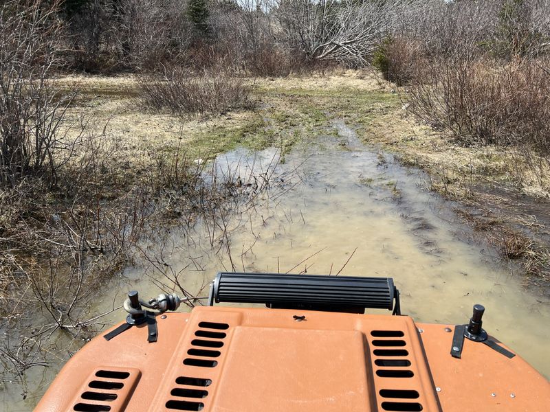 Today's ride was nothing fancy, tangly or complicated, just a nice run through some deep water, nothing unusual for Spring riding here on the East Coast. In the shadows remained a few vestiges of winter snow, but ATV trails were clear, firm and ice free.