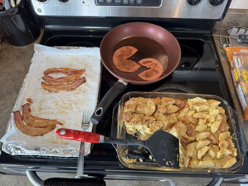 A great trip should always begin with an amazing breakfast, today was definitely one of those days. While I scraped 5cm of fresh fallen snow off the driveway, Sandra and Shelagh put together a fantastic feed of baked French toast, bologna and some of our homemade bacon.