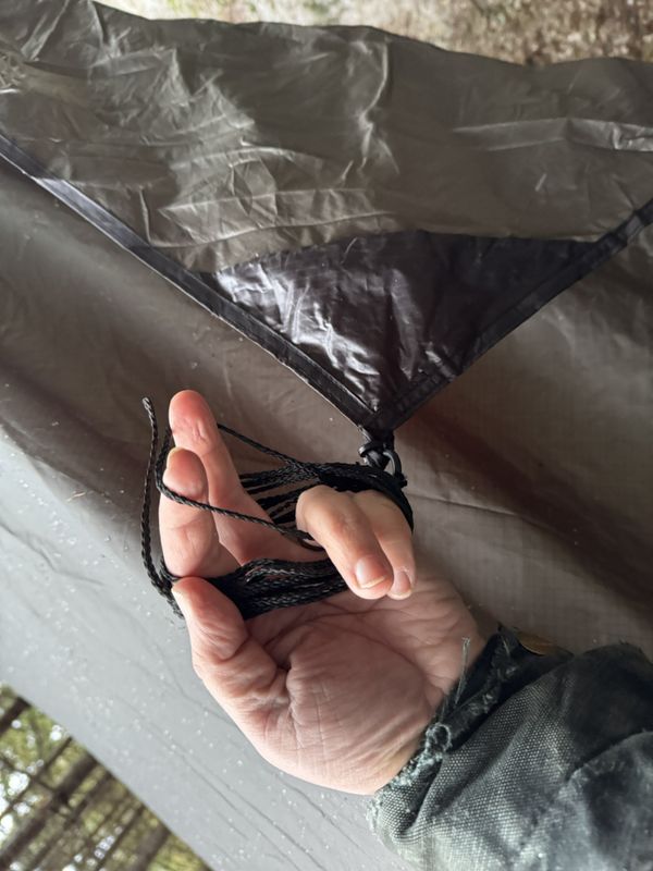 This Hennessy Hex fly neatly stores the tie off ropes inside integrated pockets, one at each corner, certainly a neat and tidy setup.
