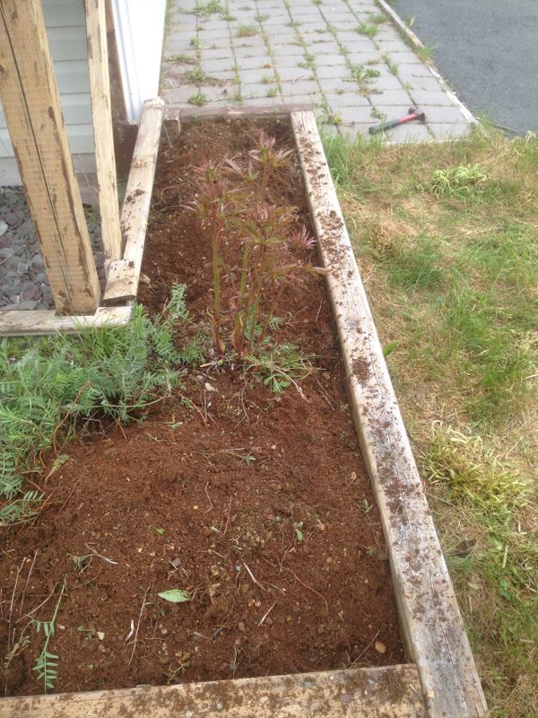 We weeded it, turned over the soil, tilled in a few bags of peat moss and set out our new plants. A few existing healthy plants were left in the bed. Eventually it will all see a fresh coat of paint although that may not happen this year.