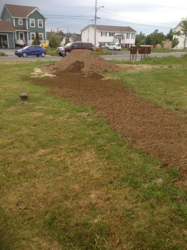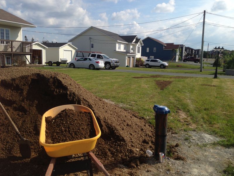 In July we got to work repairing the lawn. The previous owner drilled a brand new artesian well, apparently the old one was in a vein of sulphur. This meant the trench to the house had to be leveled with topsoil in addition to areas damaged by the well drilling truck.