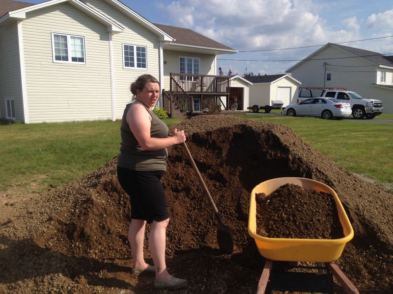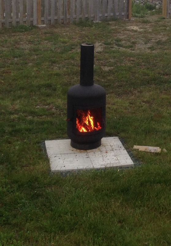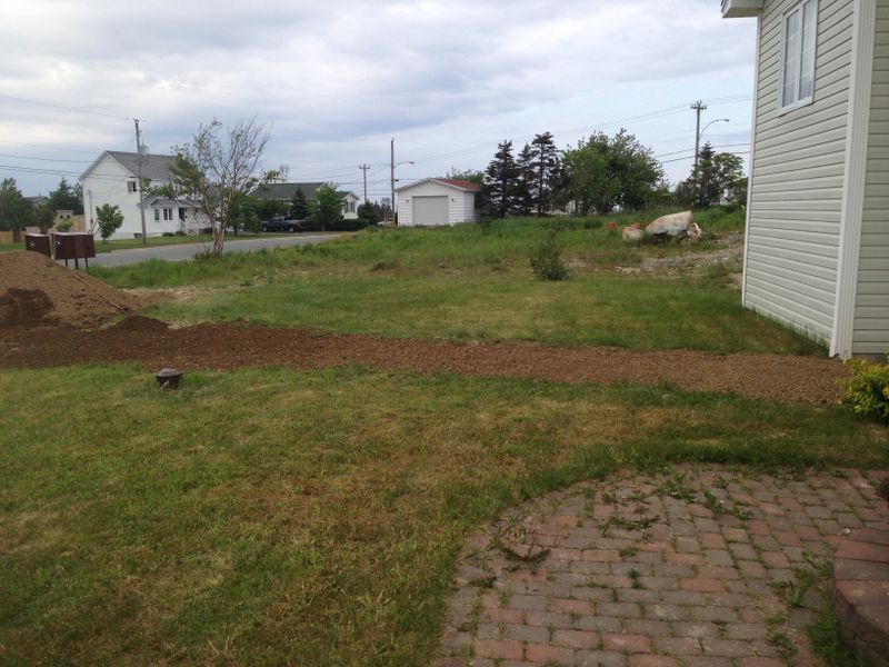 We always enjoyed the firepit at our old house in Mount Pearl, I wasted no time setting it up here in Torbay. The backyard is wide open, for now it sits proudly in the centre of the garden. I dug out the sod, laid 5" of stone and placed four 2'x2' patio stones which will hold the firepit and create a safety barrier for embers.