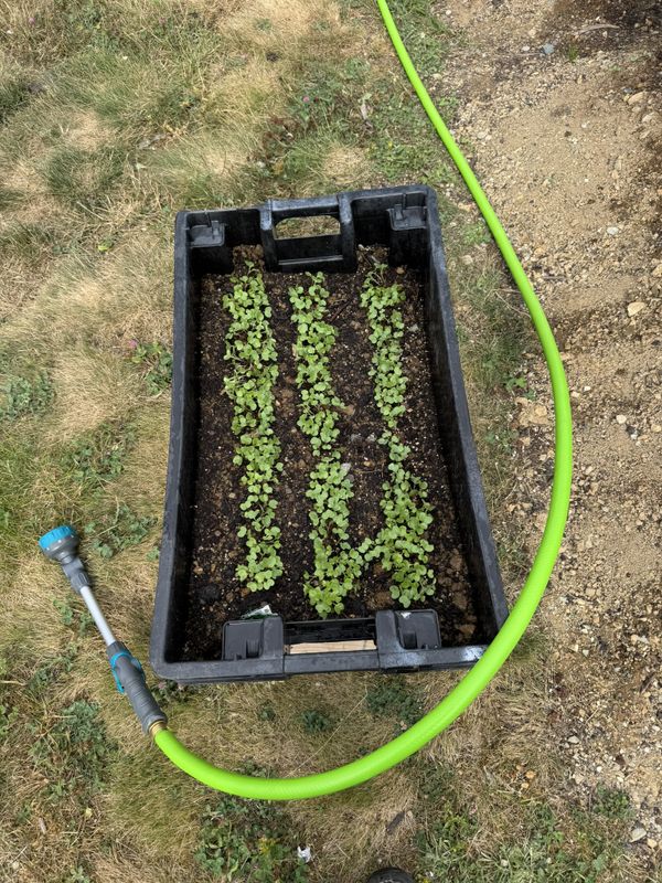 Last week I planted some turnip top seeds, I was out of room in the main garden so I threw them in a fish box along side the garden.