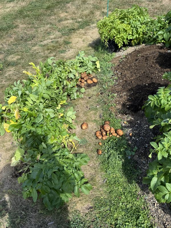 August 25th: Today I pulled a potato plant just to see how they are doing as the plant was leaned over. I was surprised at the ample size of these potato already!
