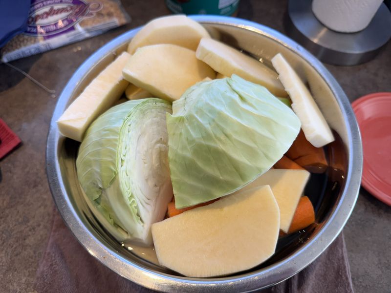October 13th: Today I discovered that every head of cabbage was infested with caterpillars despite being covered in net. However Thanksgiving Dinner forged ahead with a store bought cabbage but the rest being vegetables from our garden. With only one light frost the turnip was a little bitter, all but the one harvested for dinner remain planted out in the garden. It was absolutely awesome to share a meal with friends using vegetables we grew ourselves!