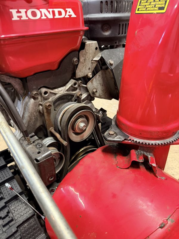 Auger belt well worn and stretched out. If I never had replacement parts I could possibly adjust the tensioner but at twelve years old this machine is getting a fresh set.
