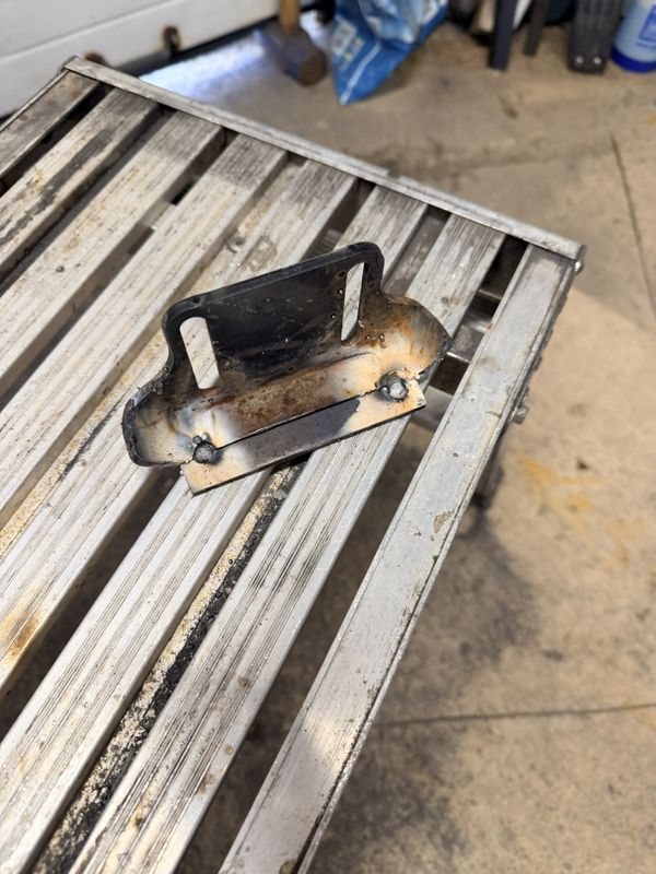 I cut off a length of slightly wider 3/16" steel plate and attached it to the old skid with my MIG Welder. I tacked it on the sides, made a full pass on the leading and trailing edges which were shaped with my grinder before paint.