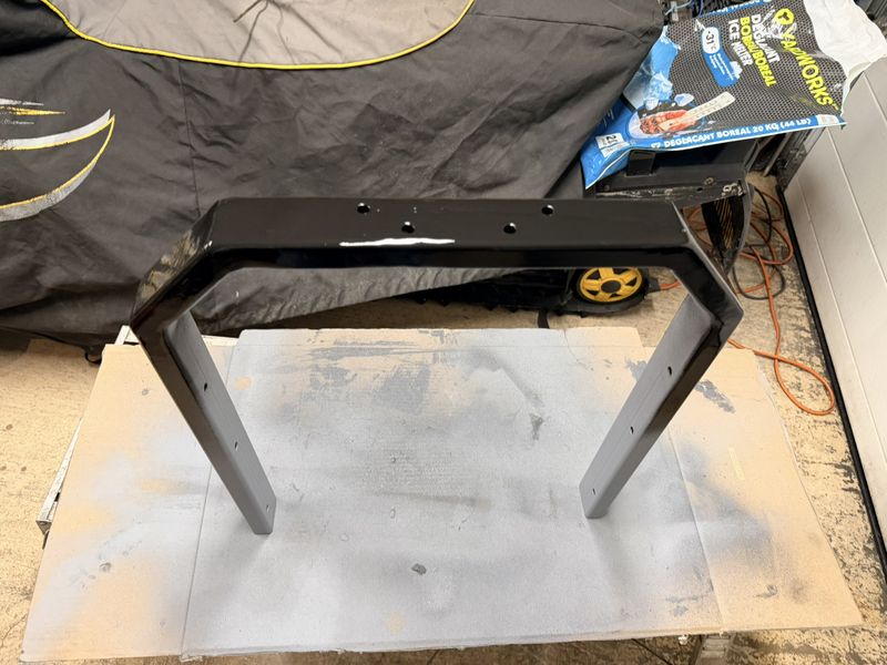 After two coats of high build primer it was time for colour, good ol' Tremclad gloss black.