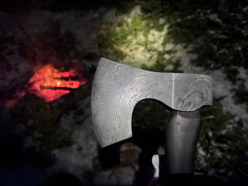 I usually use my Fiskars axe on outings but today I decided to fancy it up and take my beautiful Georgecraft Damascus Steel axe. This is not one I let beat around in the box on the bike, it rides inside my knapsack. It's very functional but this axe is used and not abused.