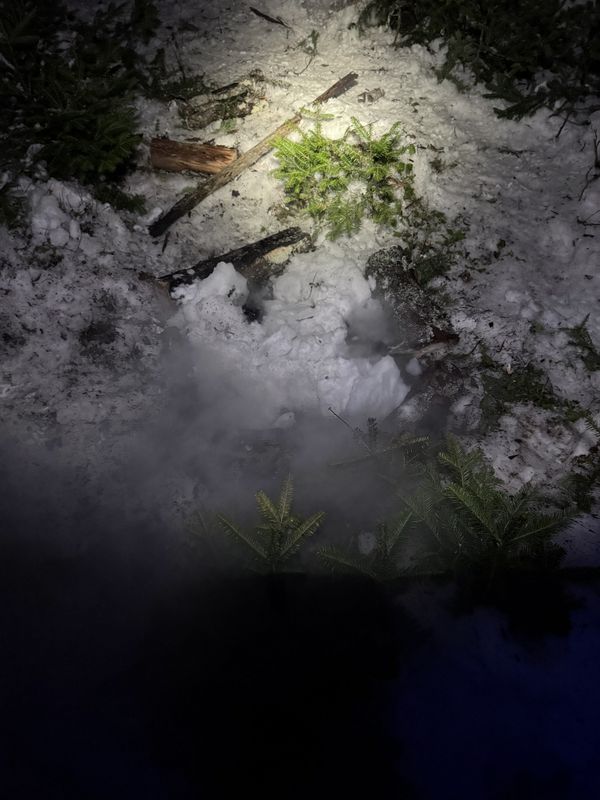 Gear all packed up and coals safely doused in snow it was time to head for home.