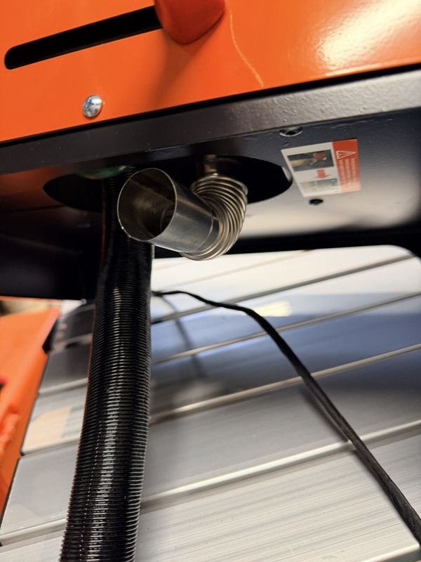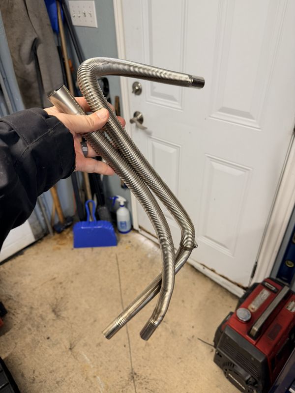 The first piece I added was this pre-formed 90º bend which will help prevent the stiff exhaust pipe from getting kinked. The burner intake pipe (black) is more flexible so it doesn't seem to be an issue.