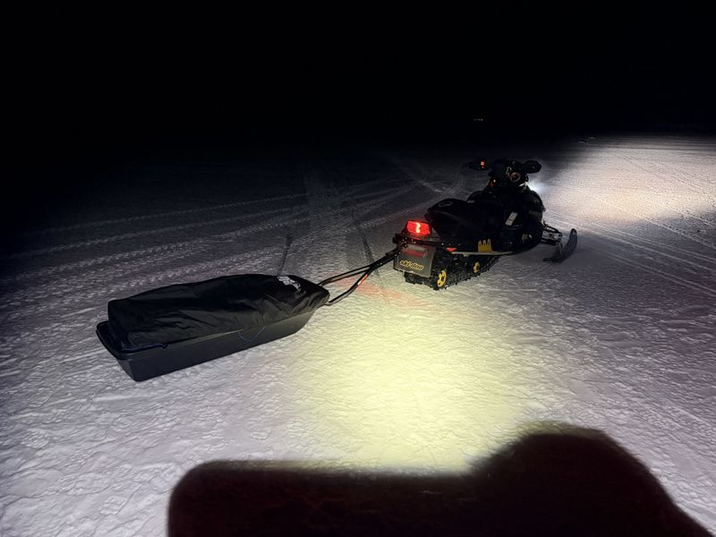 French didn't have a ton of gear with him today, so I partially loaded my Pelican sleigh and we threw the rest on his bike for the ride out which saved us some time in the cold, dark and wind. All in all it was another epic fun day in the country, stay tuned as we have a new adventure planned for tomorrow!