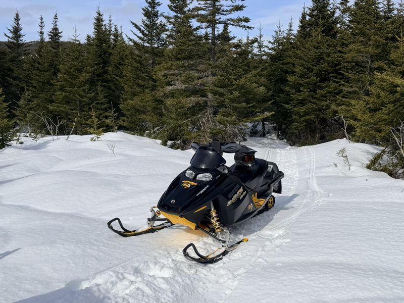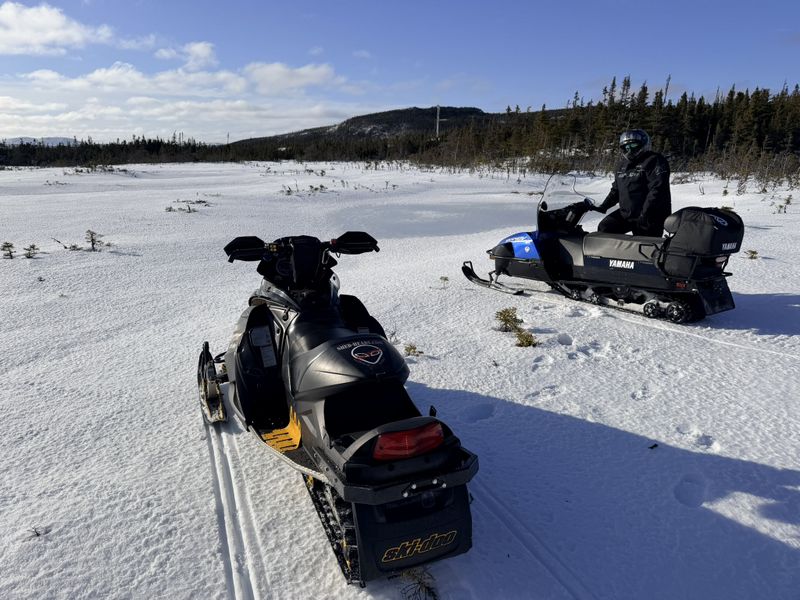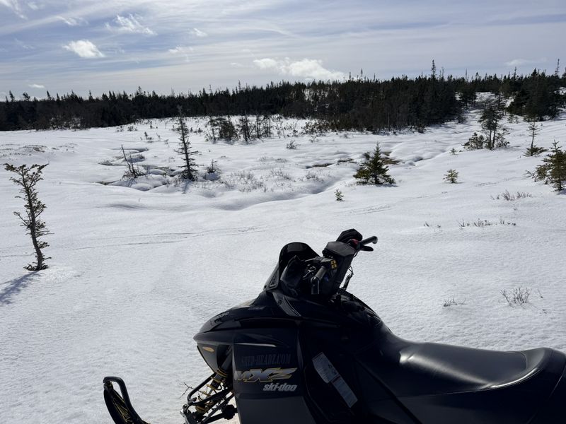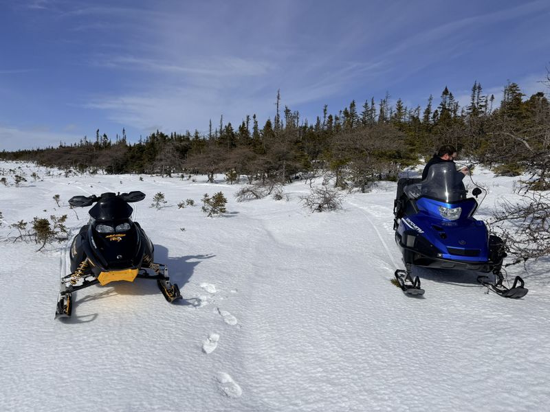 After a fantastic afternoon/evening on the pond yesterday and rain forecasted for Sunday, Saturday morning French and I headed down the Southern Shore to do some backcountry off-trail snowmobile riding/exploring and maybe fit in a little coyote hunting as well.