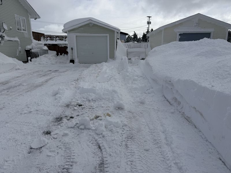 By 6pm Sunday snowfall finally eased up although winds remained high which would make snow blowing a chore. Estimates put this snowfall at around 56cm in our area while higher elevations such as Mount Pearl and Paradise saw well over 70cm!