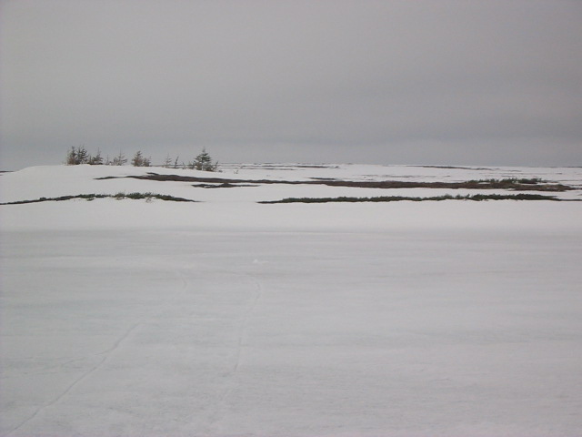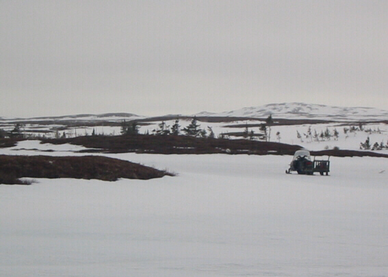 7. We offloaded the sleds on the side of the Cape Shore Highway and headed North West across country to Green Island Pond. As Winter was coming to a close the hill tops were bare, but there was still plenty of snow around so travelling was trouble free.