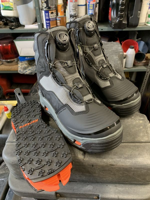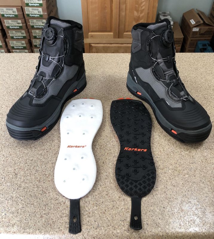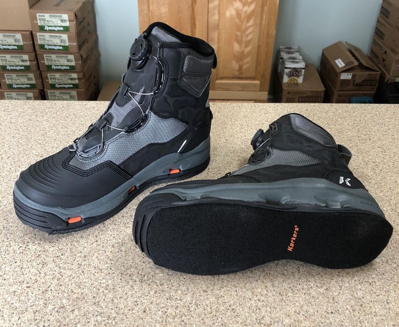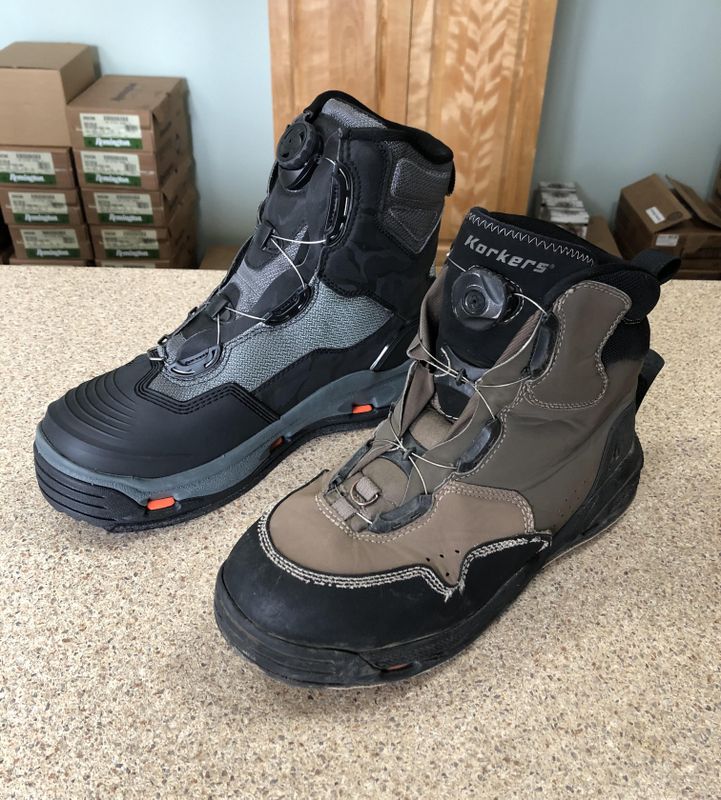 My original Korkers wading boots were starting to show their age so I ordered a pair of Korkers Darkhorse from Outdoor Pros. They retail for about $250 but are well worth the price. The Darkhorse model also features the Korkers BOA lace system and interchangeable sole system that I like so much on my original Korkers. Noticeable improvements include greater ankle support and increased protection around the toe, sides and heal areas which tend to get torn up on rough or sharp river rocks.
